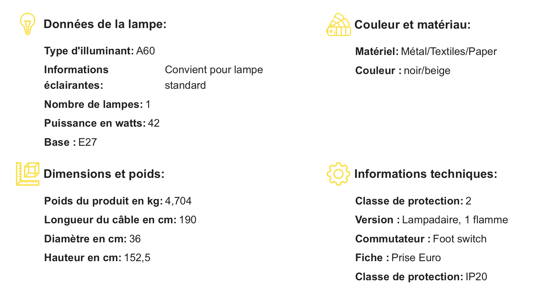 | Dimension | D: 36 - H: 152,5 cm |